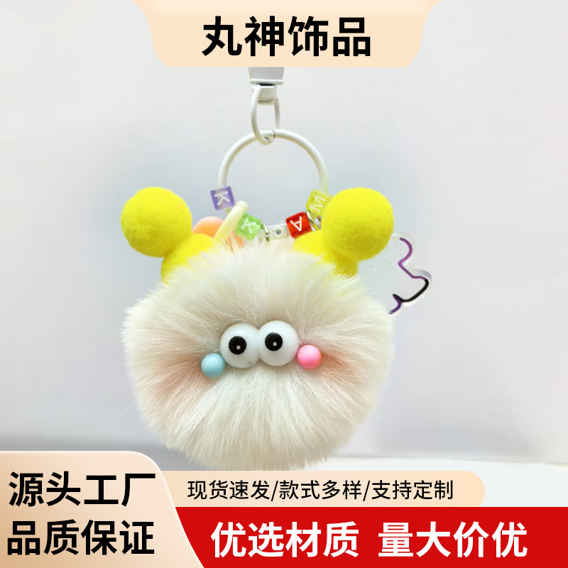 双马尾毛毛小煤球挂件汽车钥匙扣书包包包挂饰背玩偶饰品清新甜美