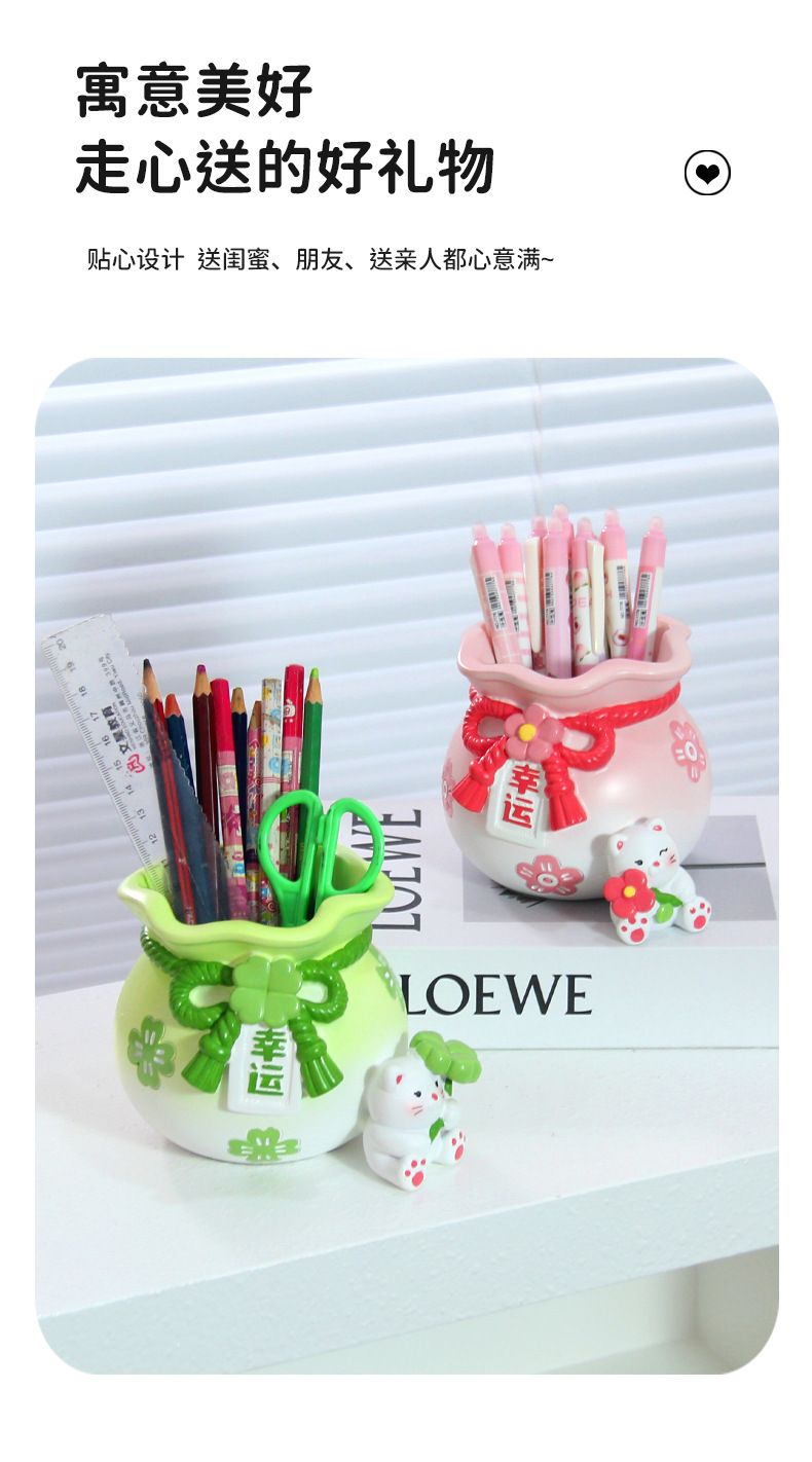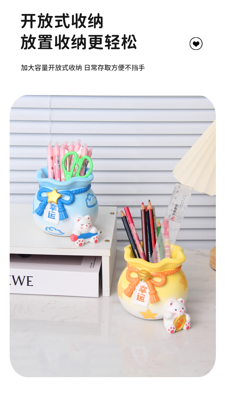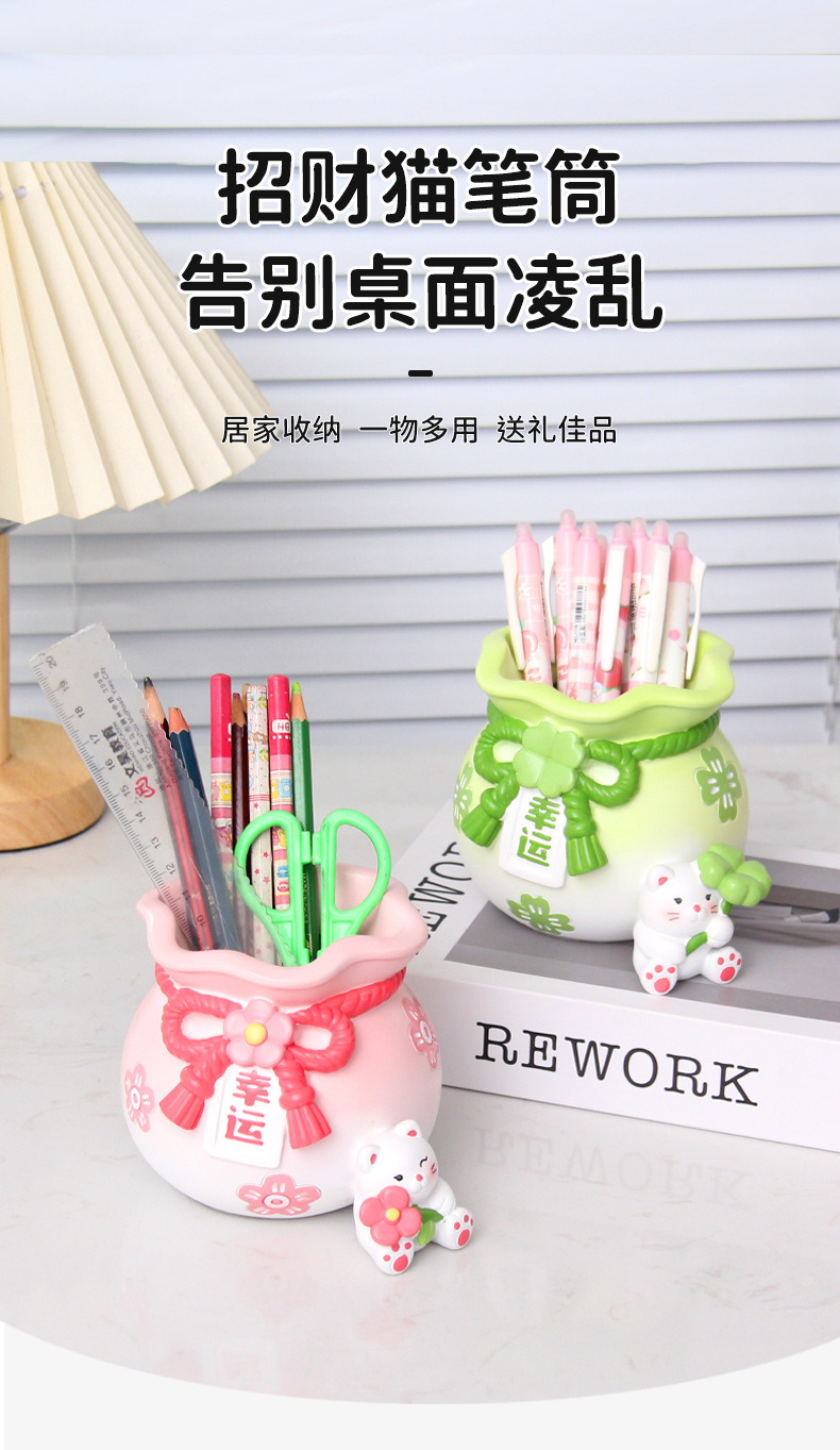 创意可爱招财猫笔筒摆件儿童学习桌面文具收纳装饰品女生生日礼物