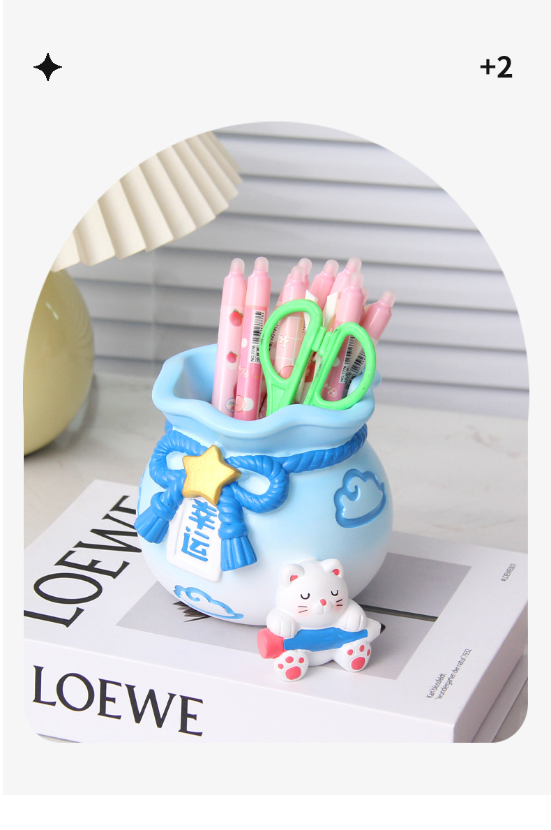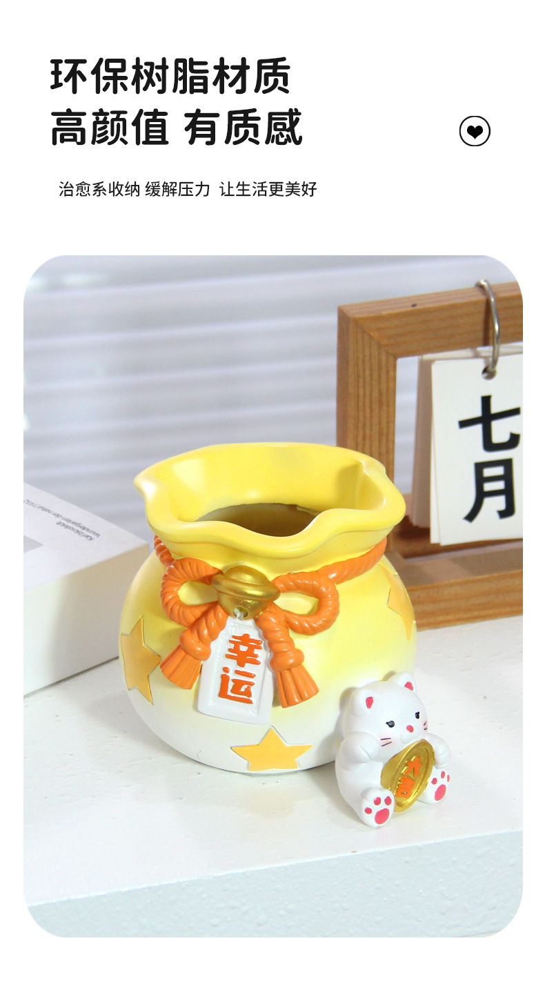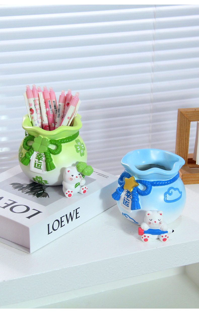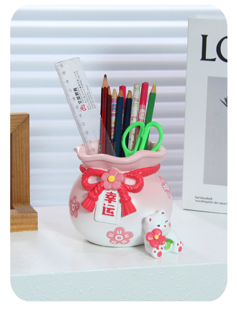 创意可爱招财猫笔筒摆件儿童学习桌面文具收纳装饰品女生生日礼物