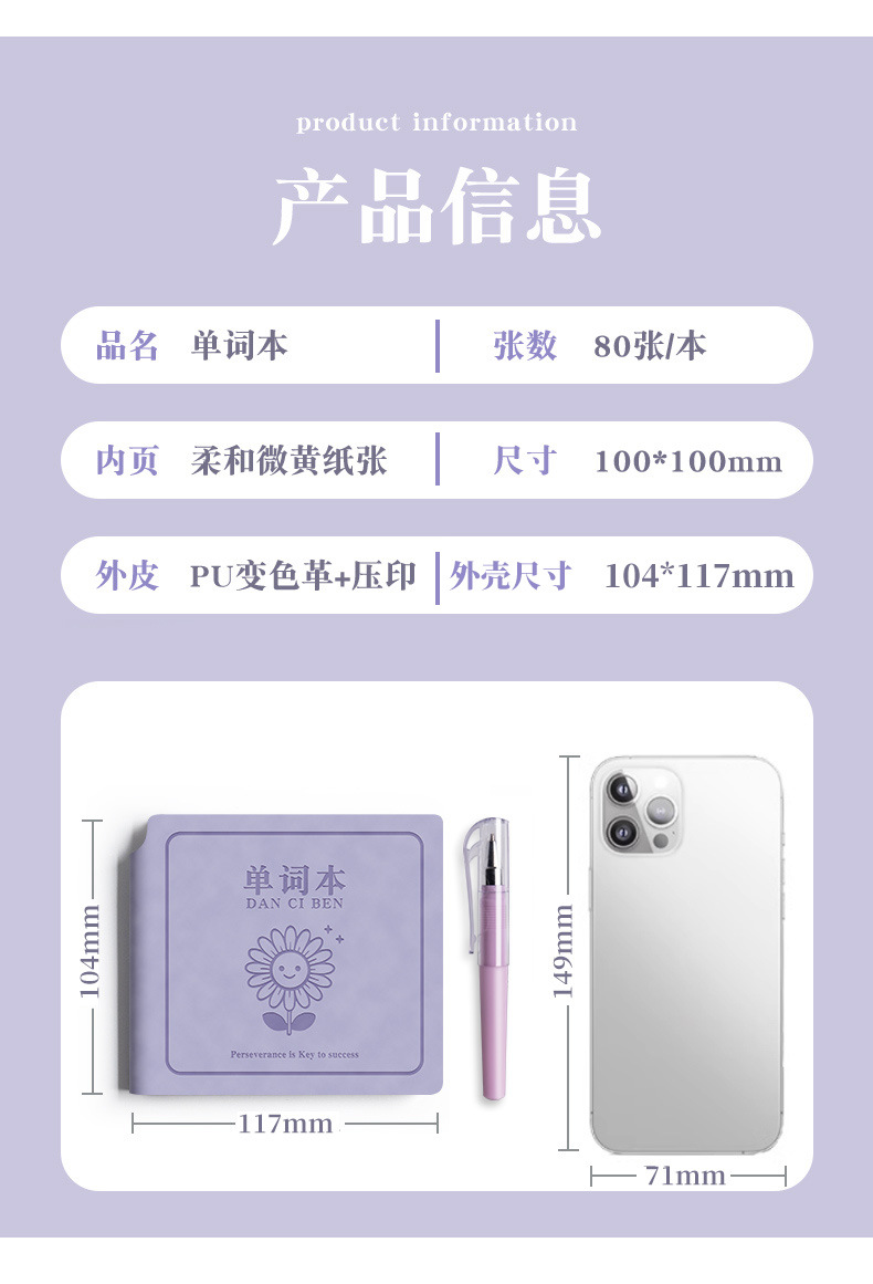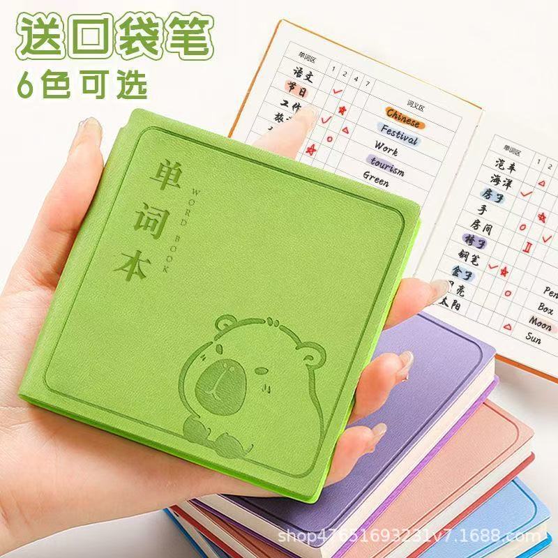 单词本便携式英语单词打卡本皮面每日计划本迷你口袋本方形笔记本