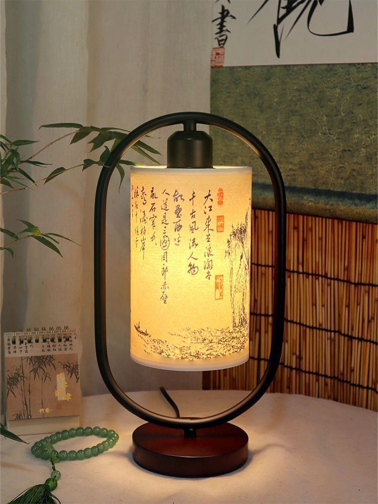 新中国式復古ベッドヘッドランプ寝室書斎民宿禅意国風小夜灯茶楼古詩詞電気スタンド書道