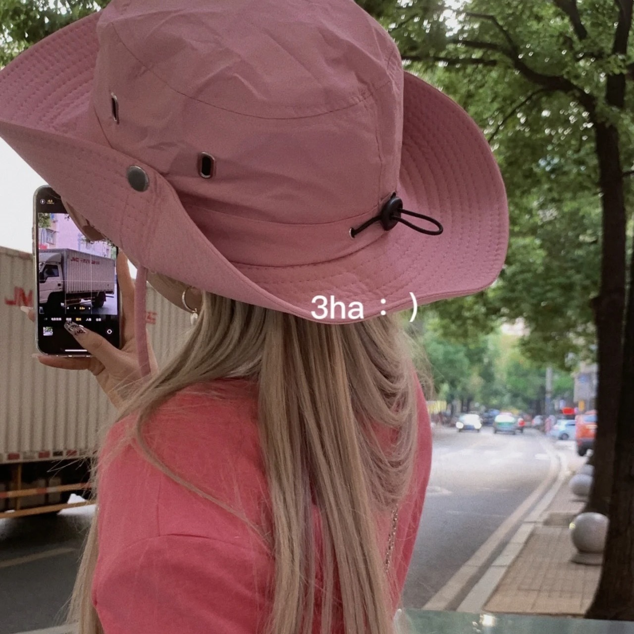 日本の大きなつばのひもの日焼け止め漁師の帽子の女性の夏の屋外は日よけの帽子の海辺の休暇のキャンプの登山の帽子に登ります。