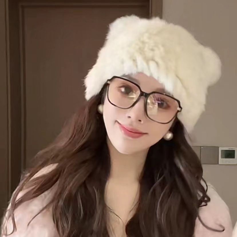 2024新型真兎毛流蘇耳毛毛帽女性秋冬顔小保温ニット帽スキー雷鋒帽