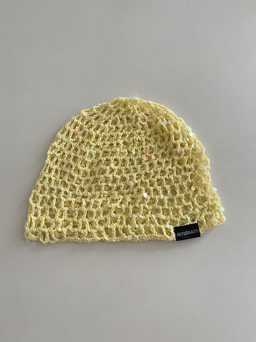 中大童ins套头帽日系可爱镂空亮片网帽女夏季亮片编织渔夫帽韩版