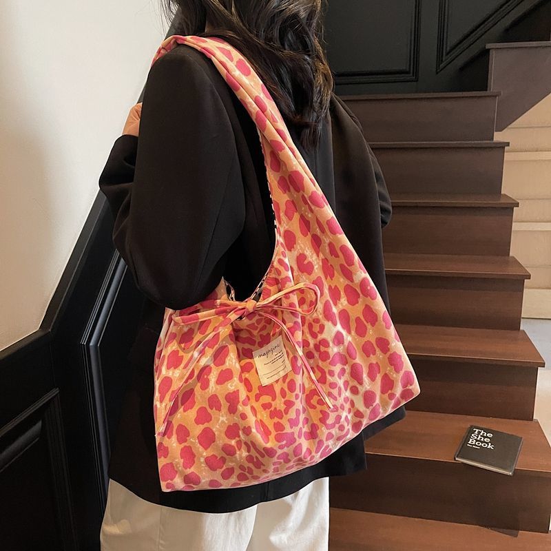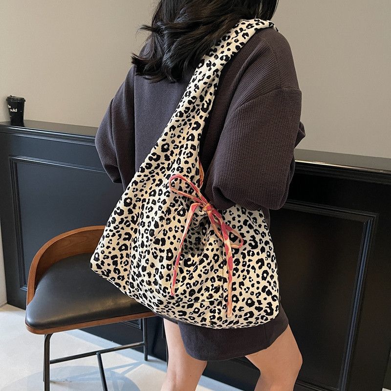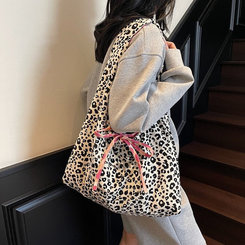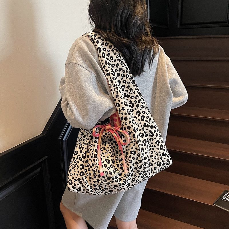 2025新款百搭时尚豹纹大学生上课通勤包高级感女大容量休闲单肩包
