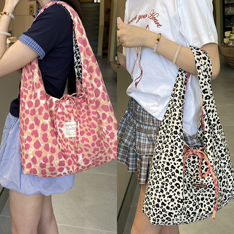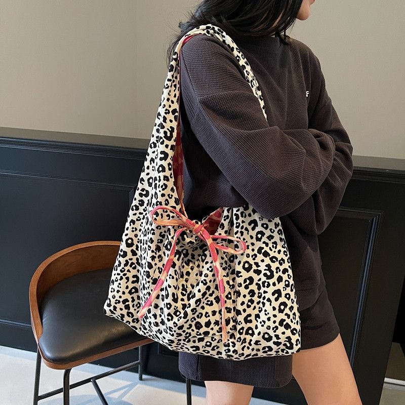 2025新款双面时尚豹纹大学生上课通勤包高级感女大容量休闲单肩包