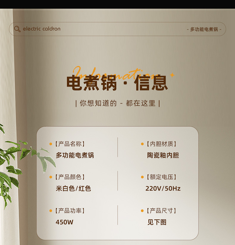 家用电煮锅多功能蒸煮炒锅2L大容量饭煲学生宿舍煮面陶瓷釉小电锅