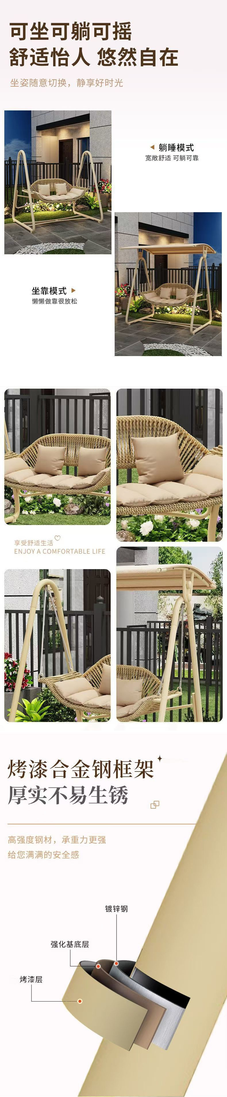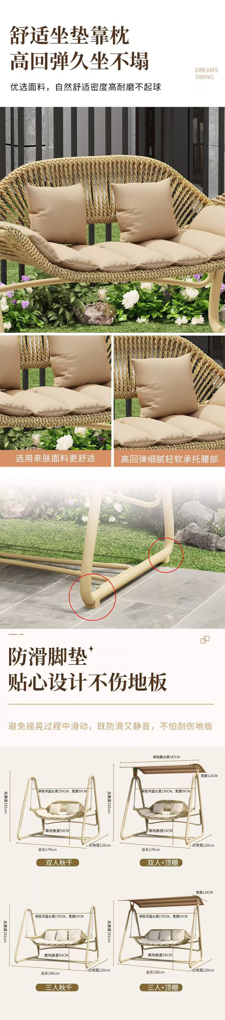 颜色 双人秋千带顶棚-送坐垫背枕,双人秋千-带坐垫背枕,双人秋千-无坐垫背枕,幻影黑秋千-送花藤,香槟金秋千-送花藤,冰川白秋千-送花藤