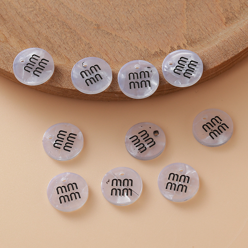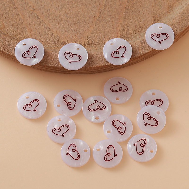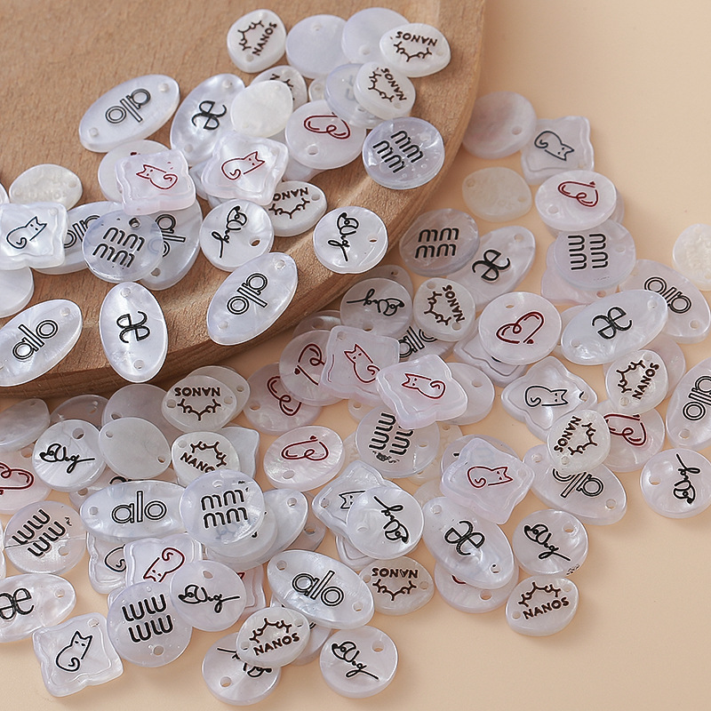 仿贝壳标牌字母印花树脂纽扣异形吊牌扣服装辅料单双孔衣标装饰扣