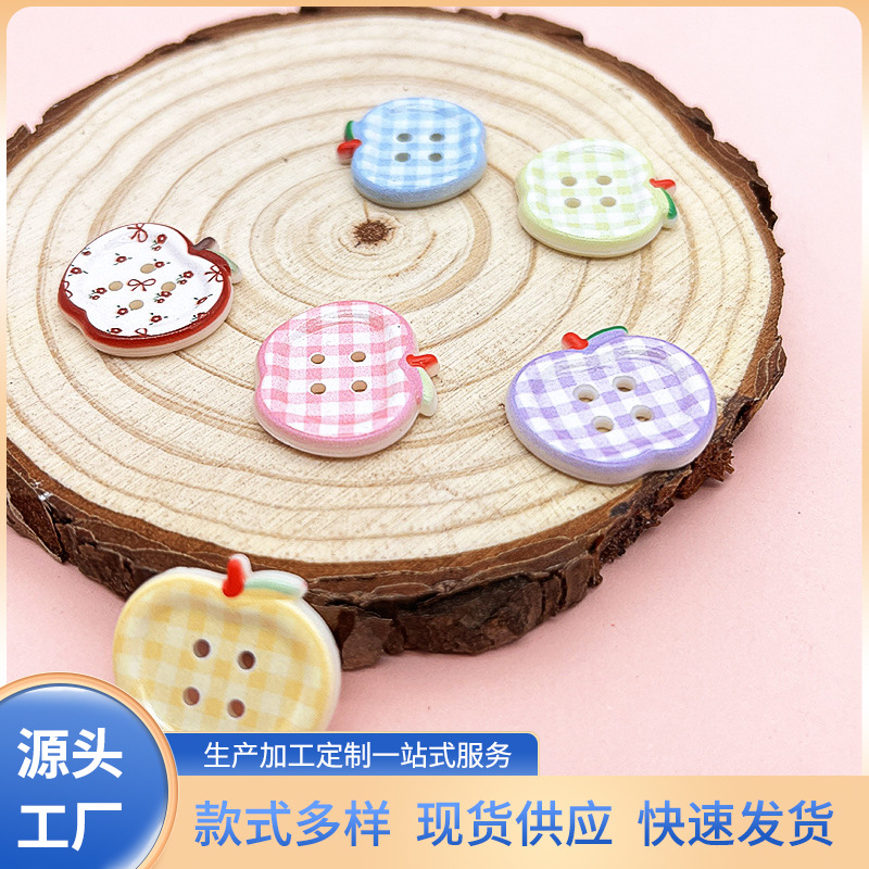 かわいい子供服カーディガンアップルプリントボタン diy ジュエリー携帯電話チェーンアクセサリーカラフルなアップル 4 目装飾バックル