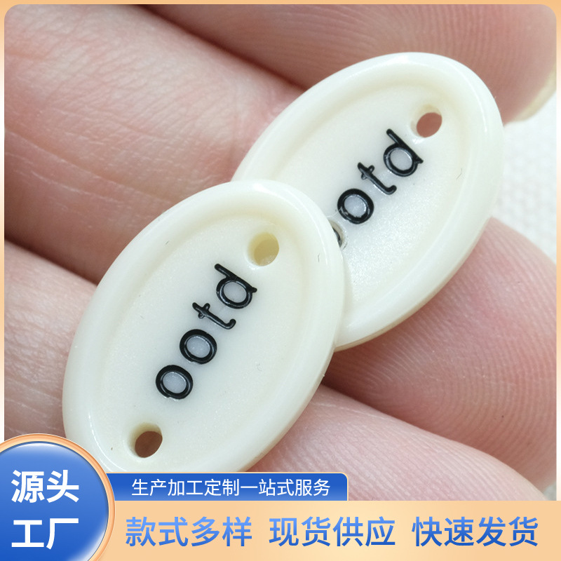 树脂椭圆形装饰扣文艺复古两眼字母印花商标标牌钮扣服装辅料钮扣