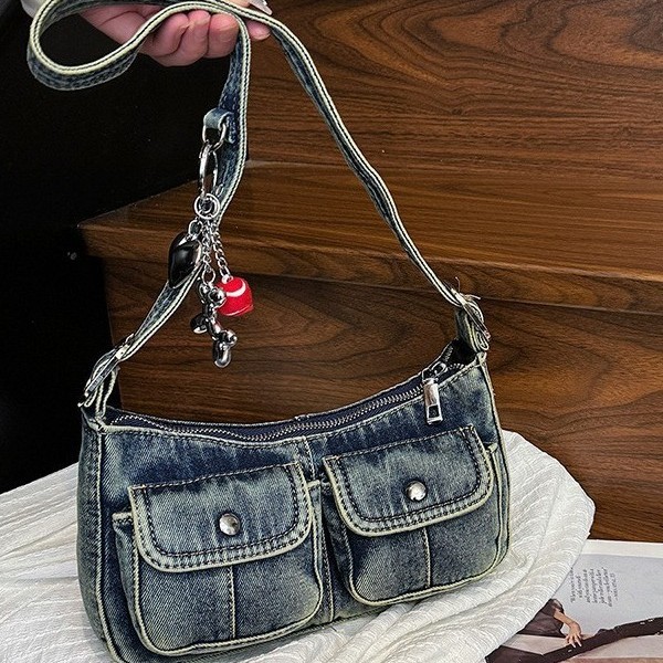 ファッション脇の下バッグ 2025 新しいレトロな古いデニムバッグ小さな女性のホットガールバゲットバッグ通勤ショルダーバッグ