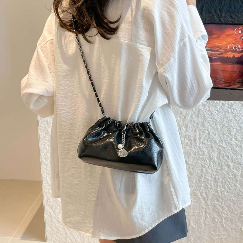 2025新款时尚网红水桶包百搭潮流链条斜挎包韩系高级感褶皱包包女