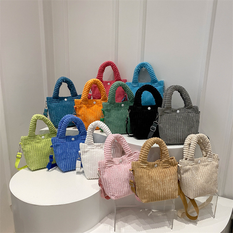 新商品の小さい衆の灯芯の絨毯の斜めなショルダーバッグの韓国版のシンプルでかわいいハンドバッグの潮のあめの色の軽い手はバケツの包みを持ちます。