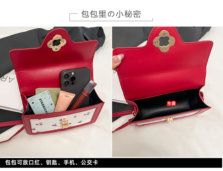 樱桃印花质感时尚手提包包女2025新款潮小众斜挎包洋气文艺小方包