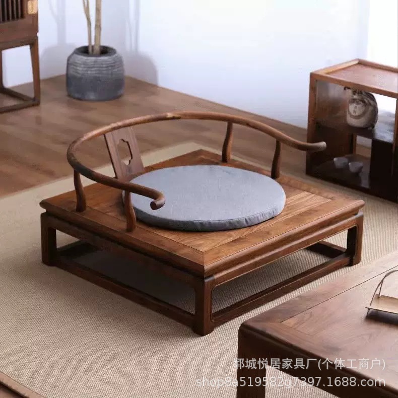 实木新中式塌塌米坐椅矮椅飘窗椅日式阳台禅修椅无腿靠背椅茶桌椅
