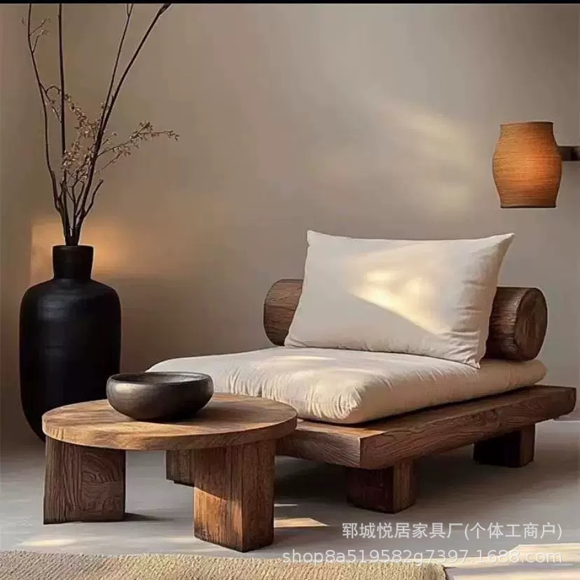 老榆木圈椅新中式矮椅民宿禅意打坐椅主人椅榻榻米椅阳台休闲椅子