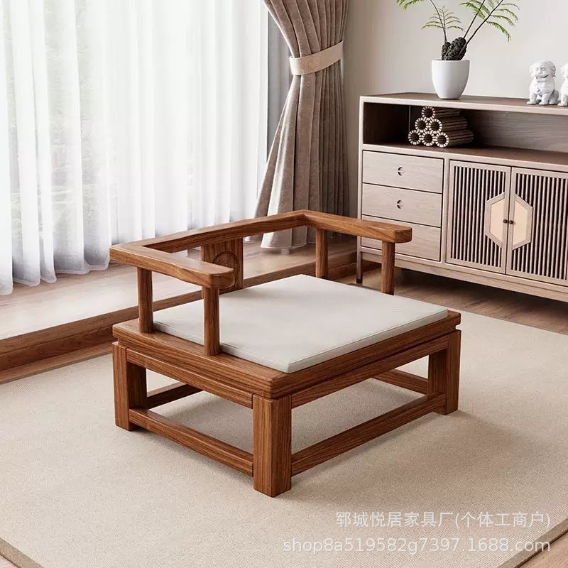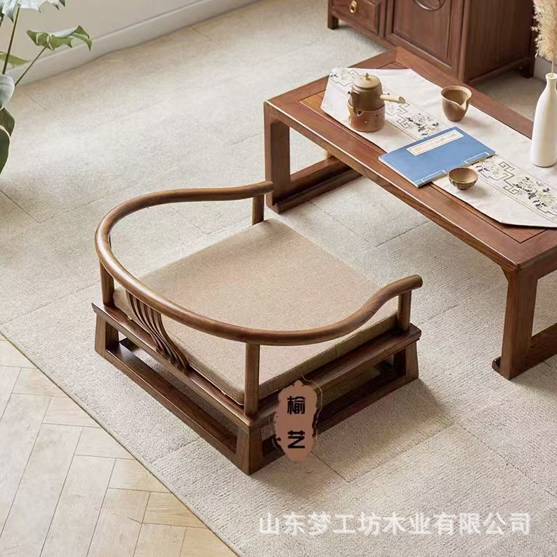 老榆木榻榻米圈椅无腿茶室座椅新中式单人靠背休闲椅低椅炕椅餐椅