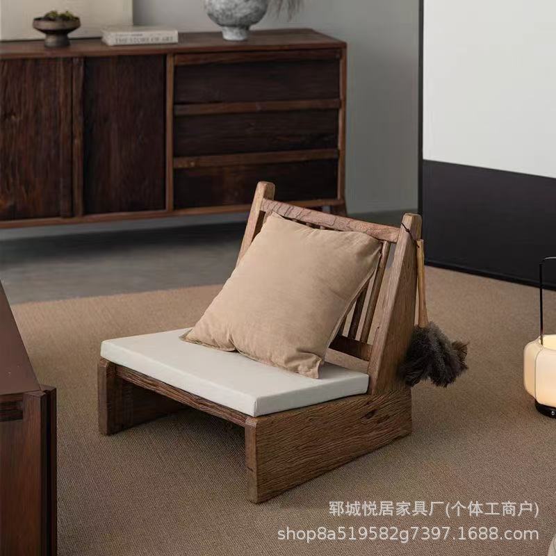 席地榻榻米圈椅中式实木靠背椅无腿座椅炕椅飘窗椅老榆木榻榻米椅