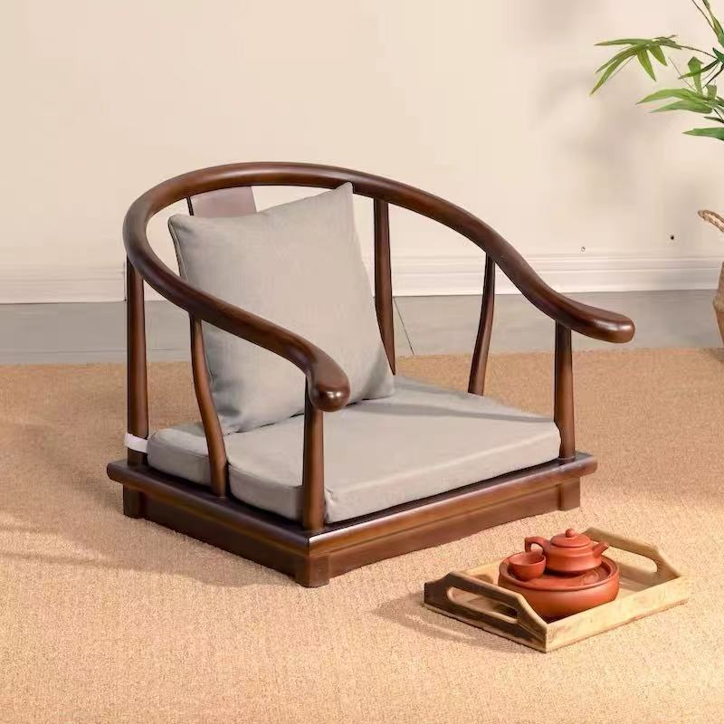 榻榻米日式禅意圈椅靠背椅中式打坐椅无腿落地懒人椅子太师椅炕J&