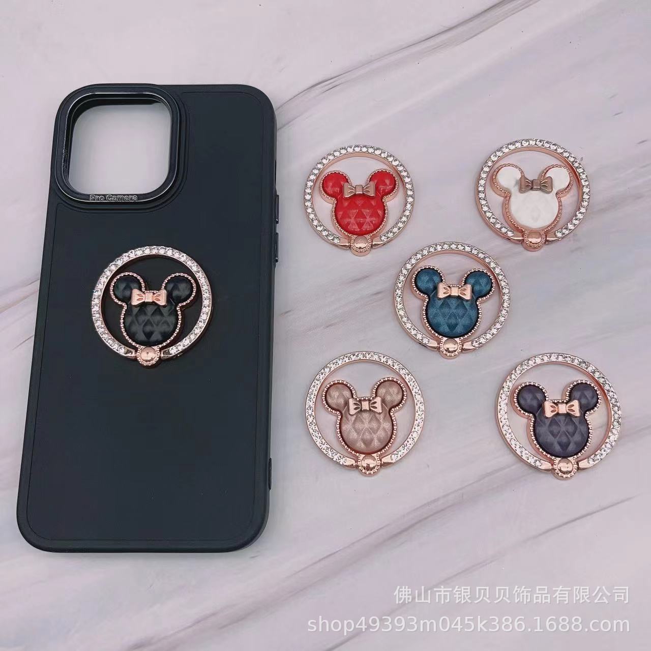 2025年新型メタルリング携帯電話スタンド ins風漫画ミッキーヘッドダイヤモンド付き携帯電話スタンド