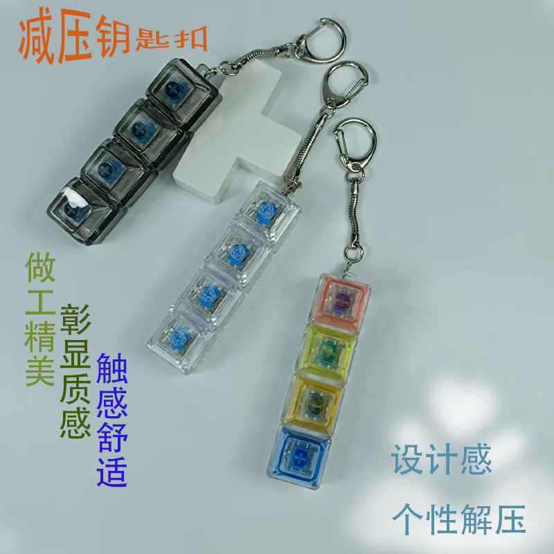 跨境发光高透解压按键机械键盘捏捏乐手指无聊减压按键发泄钥匙扣