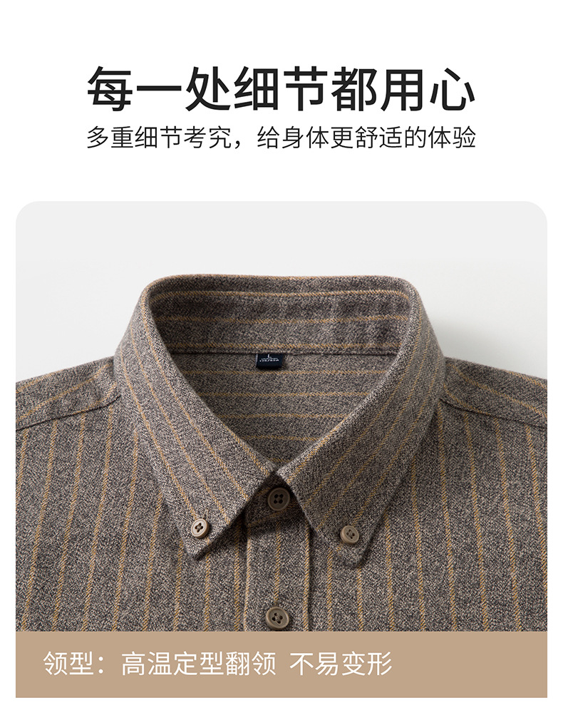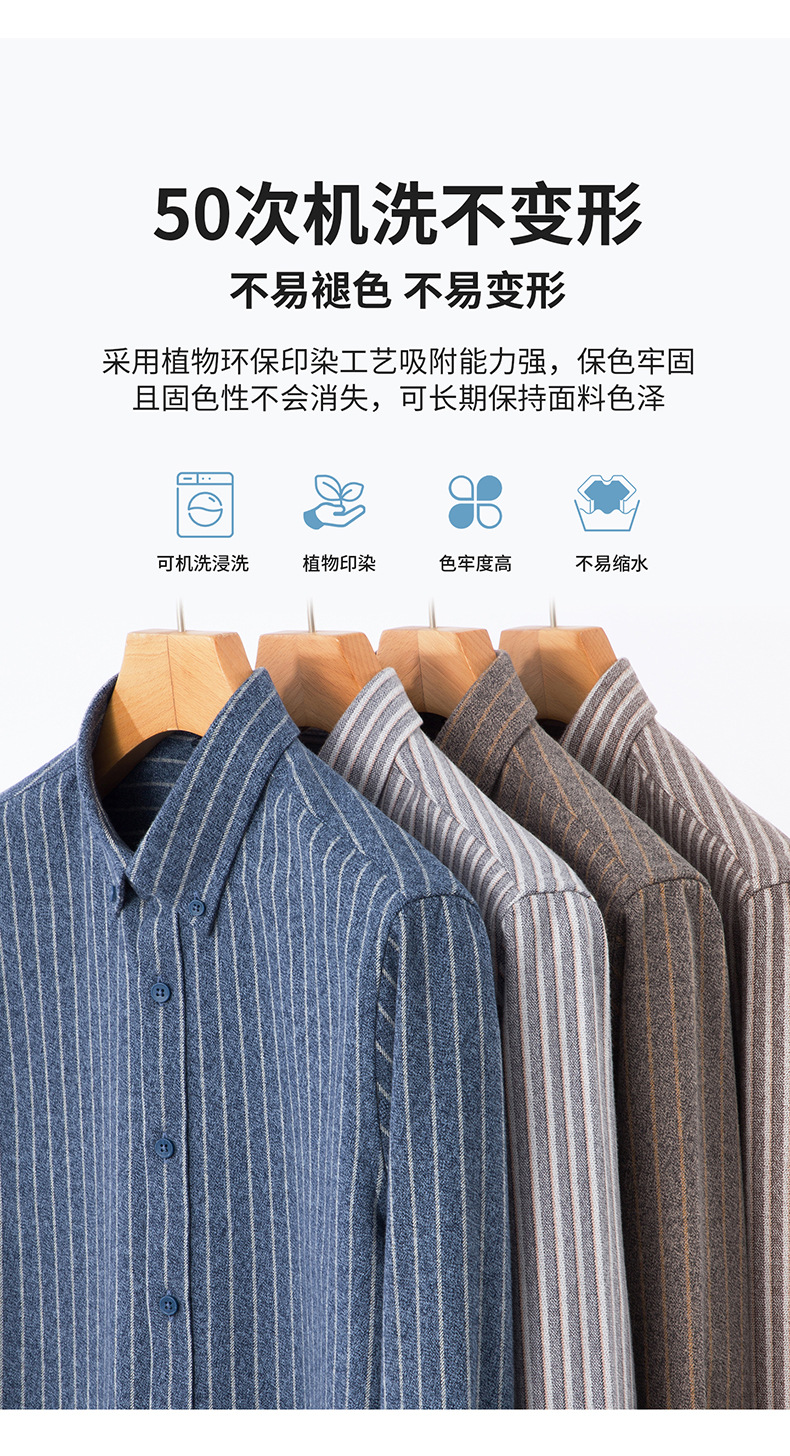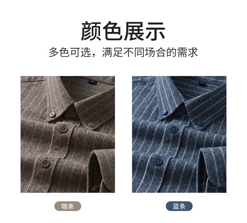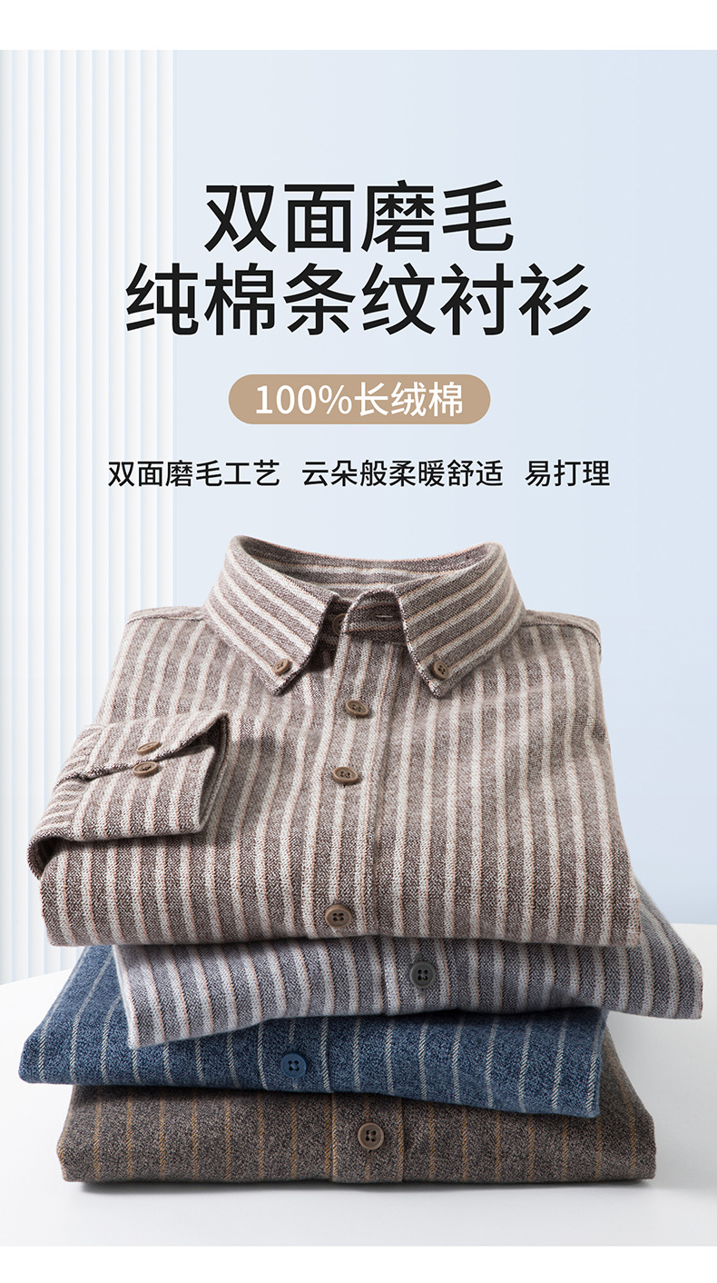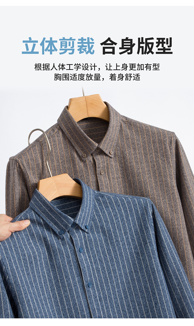 新纯棉男士保暖衬衫秋冬季新款长袖百搭竖条纹磨毛休闲商务男衬衫