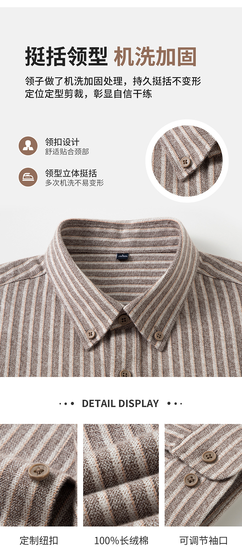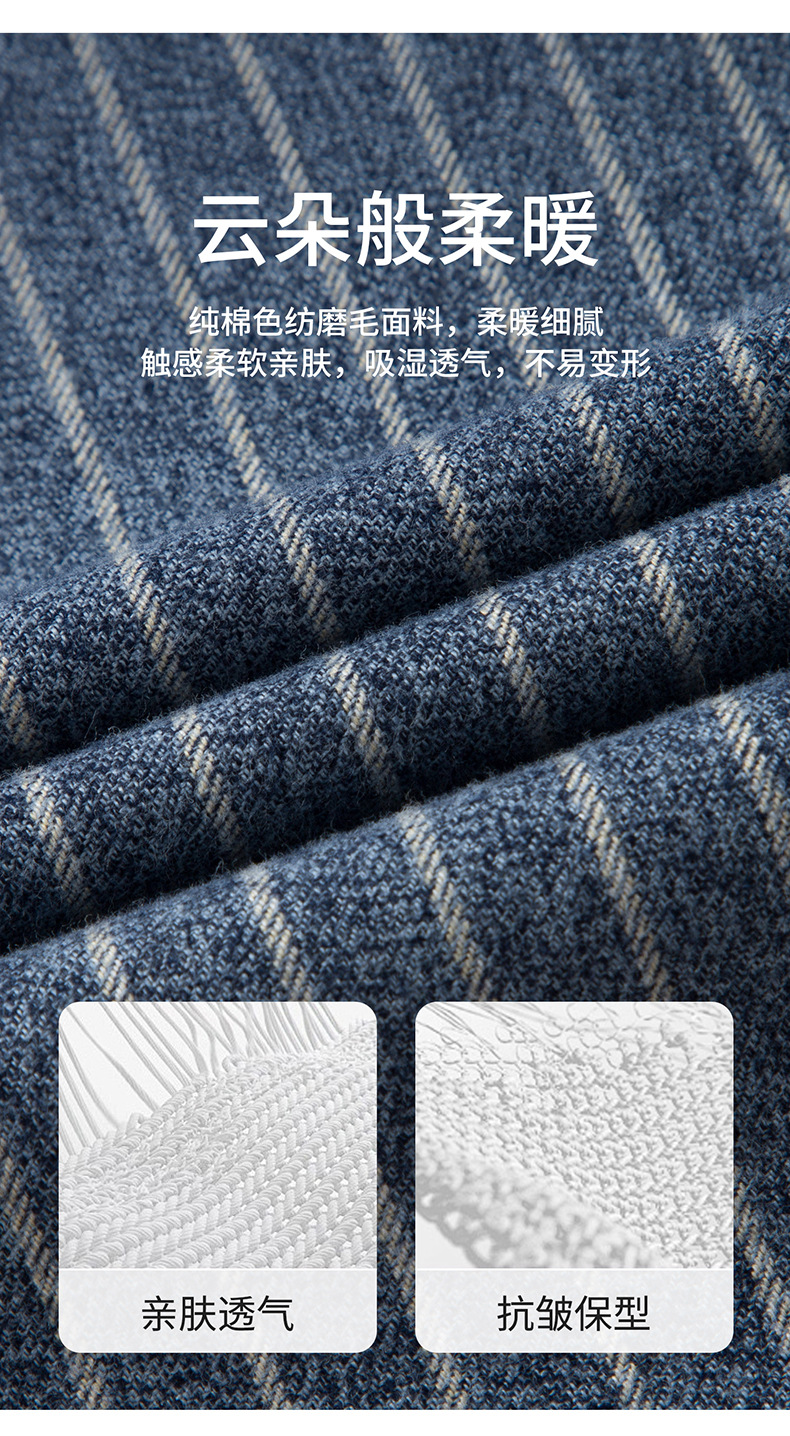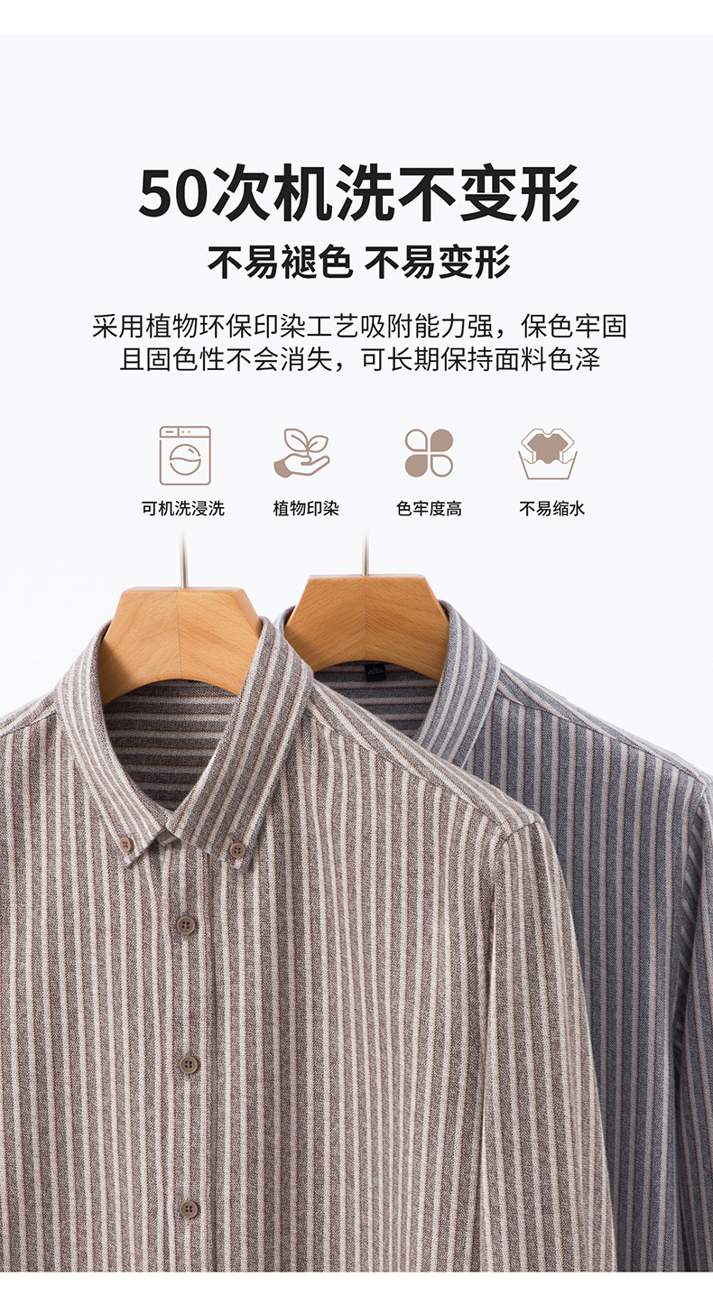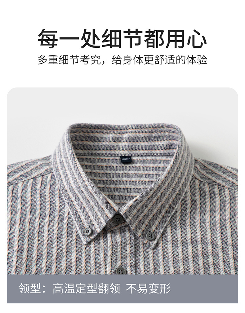 新纯棉男士保暖衬衫秋冬季新款长袖百搭竖条纹磨毛休闲商务男衬衫