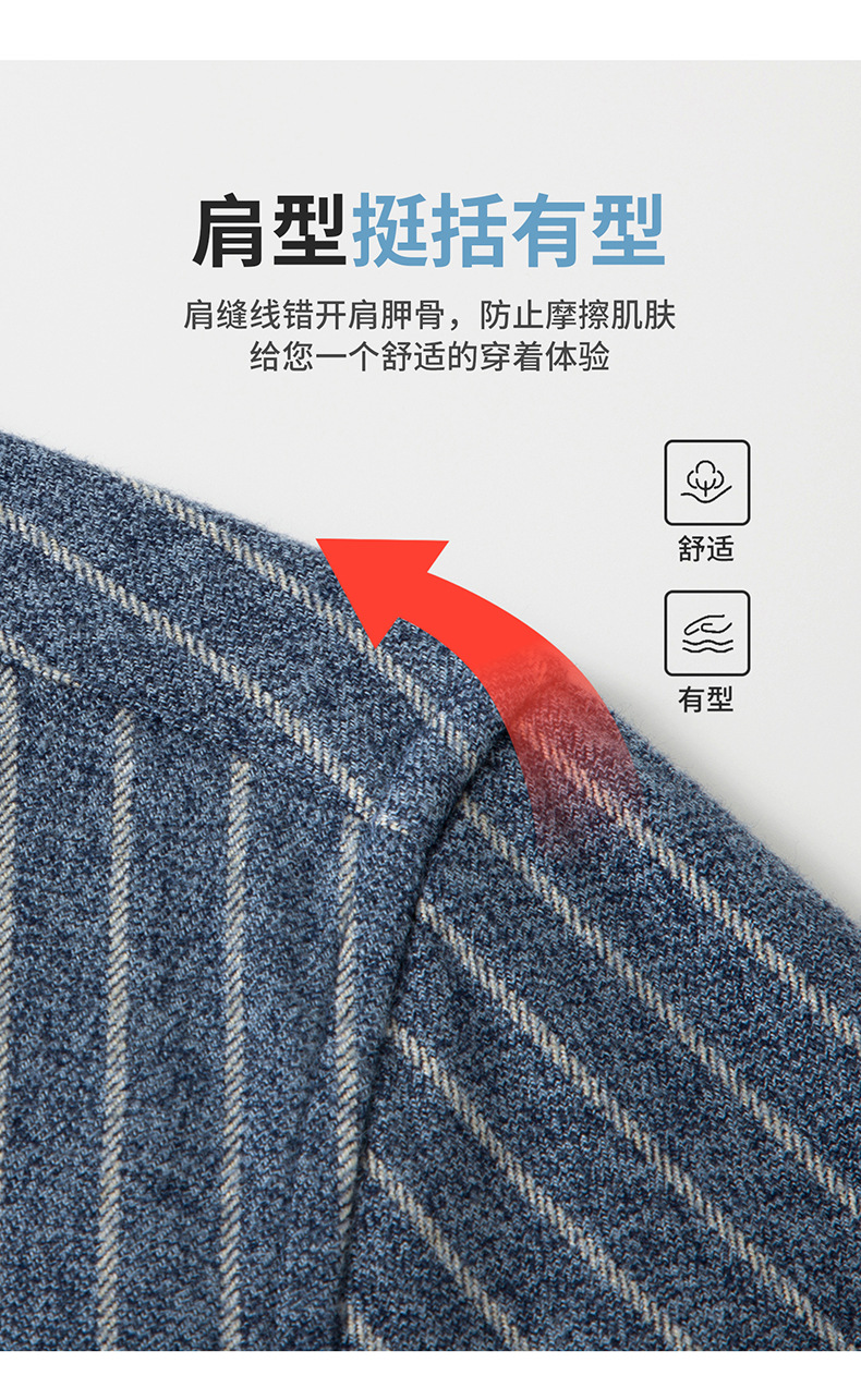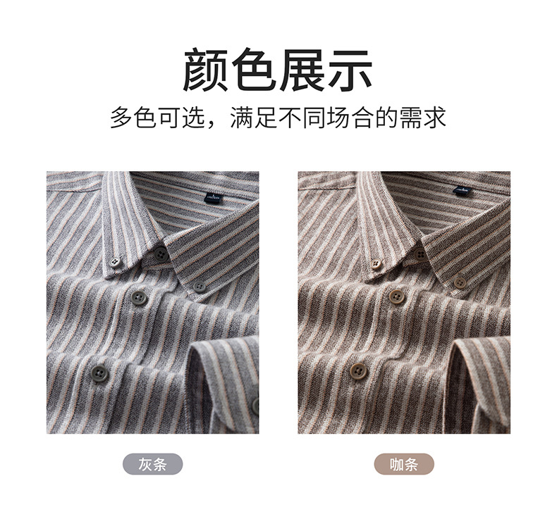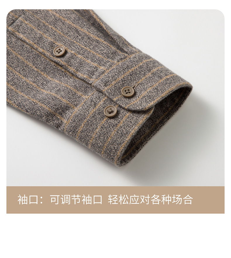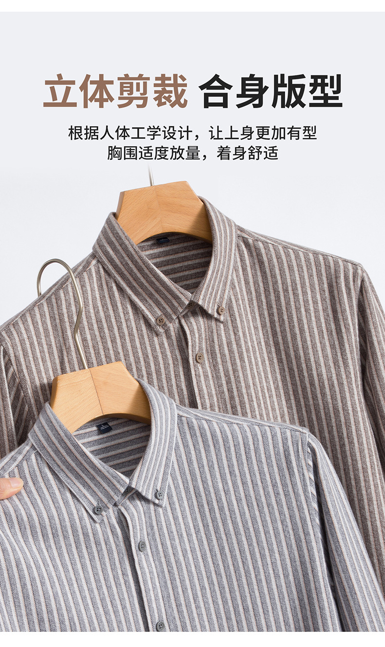 【羊毛+棉】2025秋冬季新款竖条纹长袖衬衫男衬衣休闲加厚寸衫男