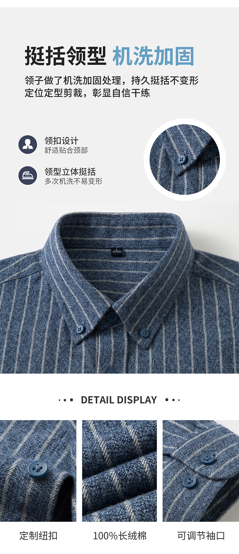 纯棉磨毛男士衬衫长袖秋冬季纽扣领中老年休闲衬衫新款男式衬衣