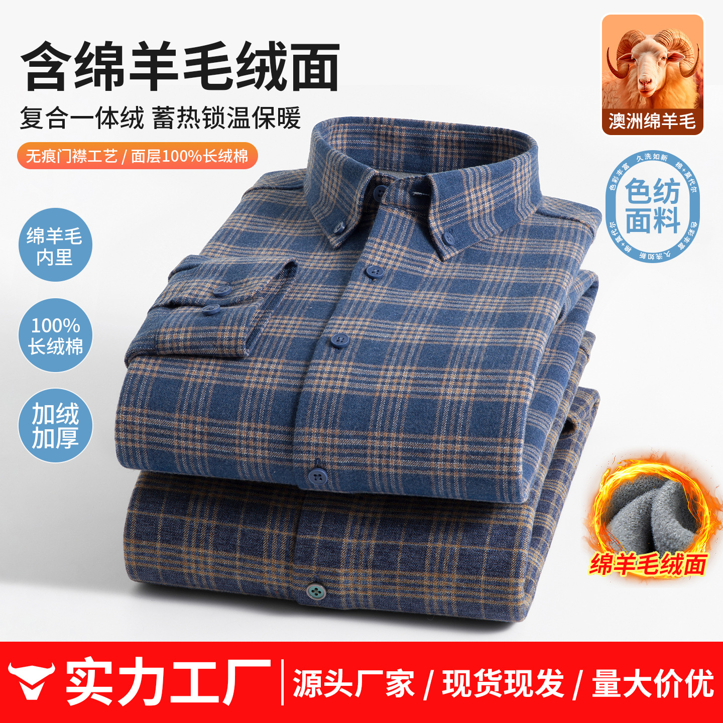 【羊毛复合一体绒】冬季加绒加厚衬衫男士长袖休闲商务保暖衬衣男