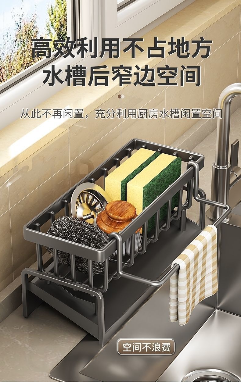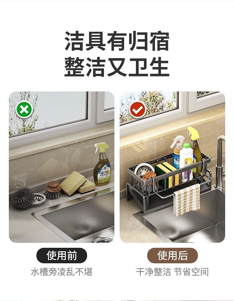 沥水架厨房置物架水池水槽抹布篮台面水龙头海绵洗洁精洗碗收纳架