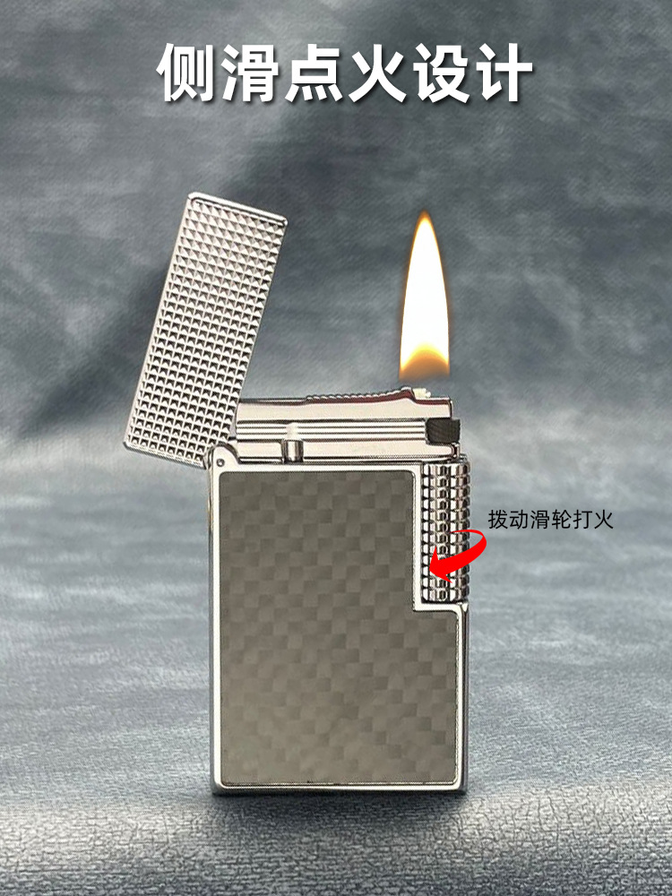朗声鋼音清脆好运達小方格側滑黄銅煤油打火機メーカー卸売正規品金属男性用