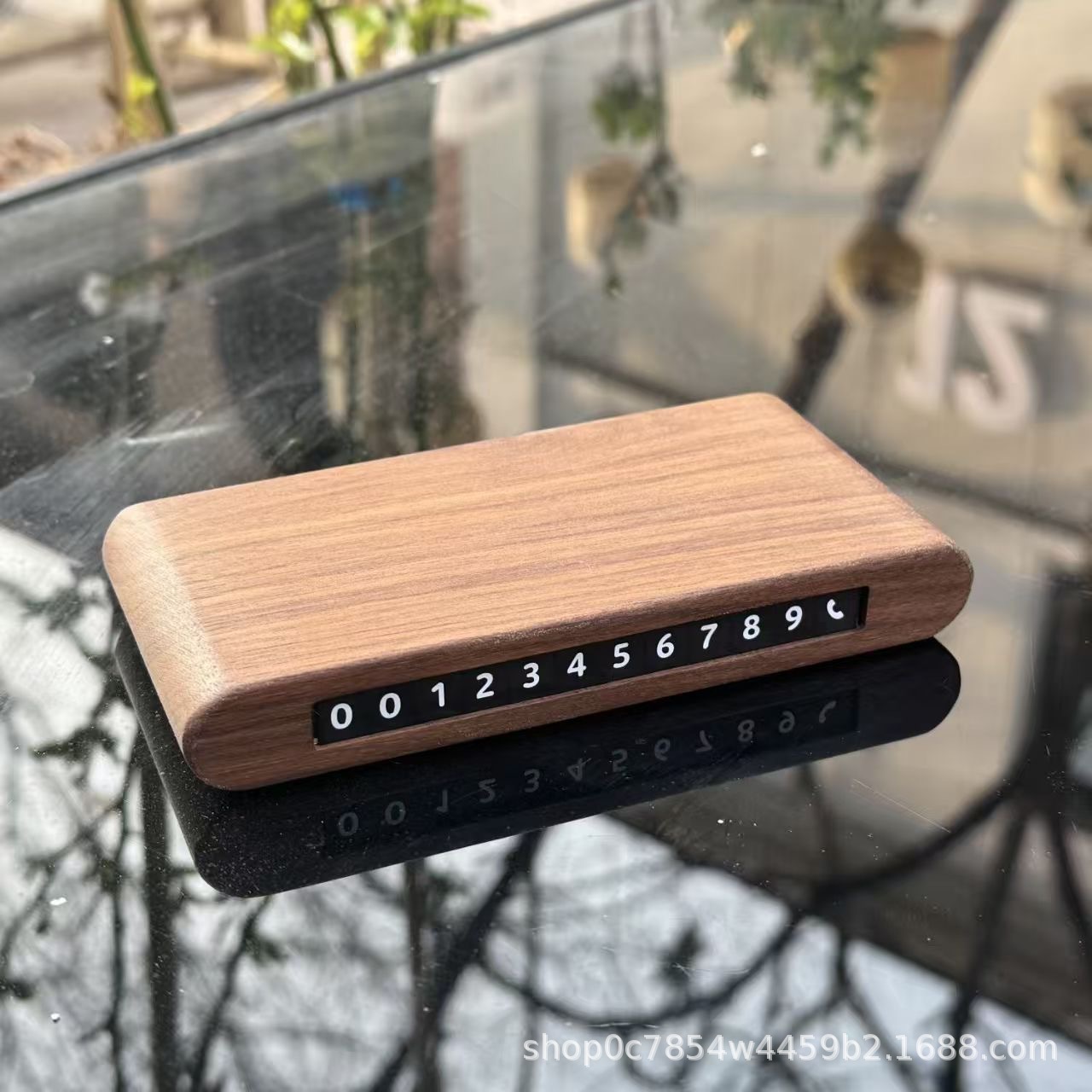 胡桃木停车牌奶油胶挪车牌diy车载摆件磁吸数字号码