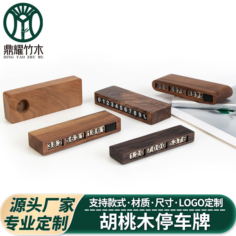 【】实木胡桃木临时停车牌diy挪车牌底座磁吸号码牌跨境热销