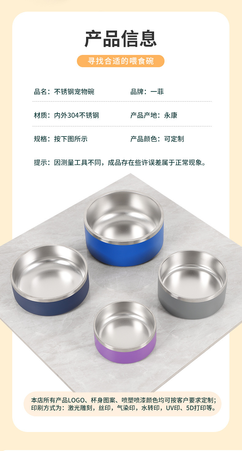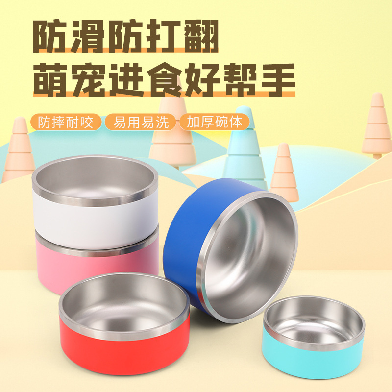 クロスボーダー熱売二重ステンレスペットボウルは滑り止め防止猫フードボウル印ロゴカラー犬盆卸売りを厚くした