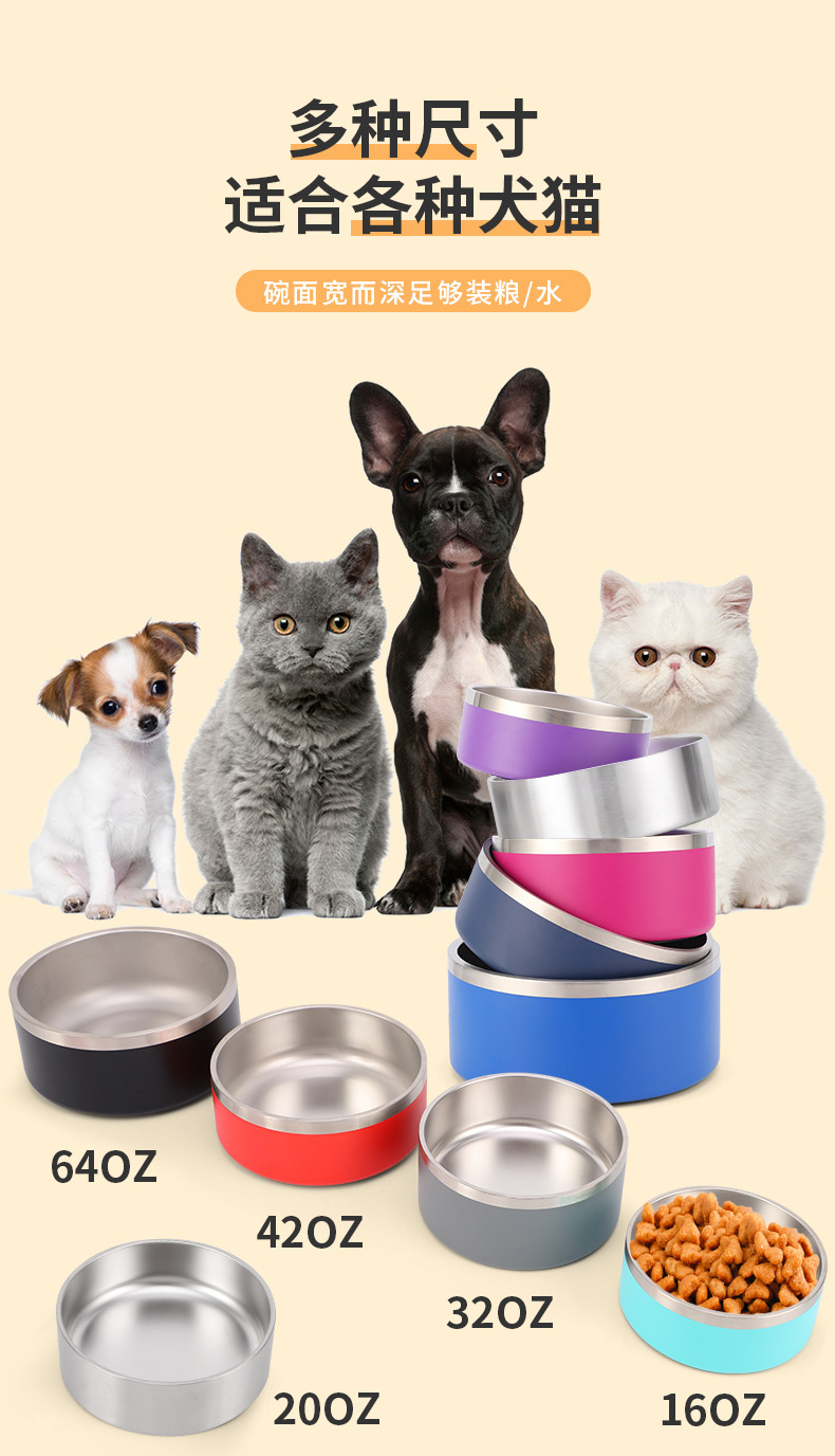 メーカー現物犬盆ステンレス犬碗ペット碗円形二層真空犬糧碗卸売り