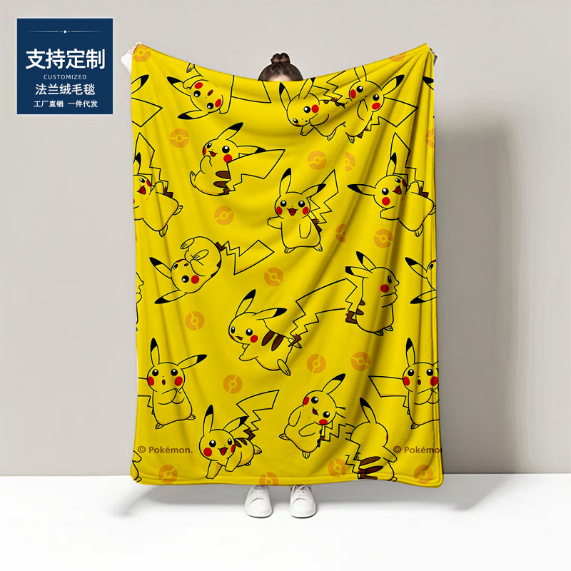 ピカチュウアニメフランネル毛布カスタムパターン四季通用シングルエアコン毛布ショール毛布厚手フリース