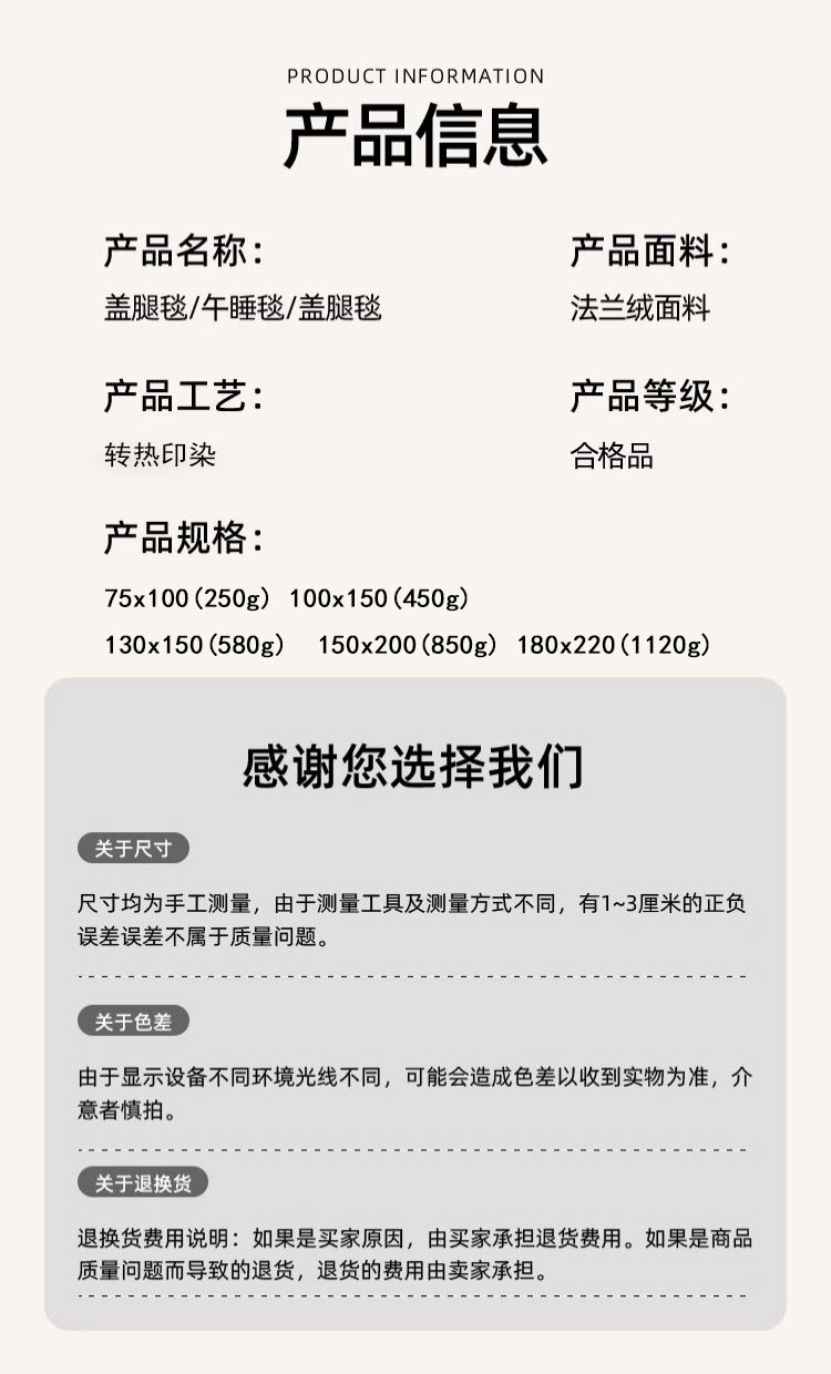 毯类型 法兰绒毯