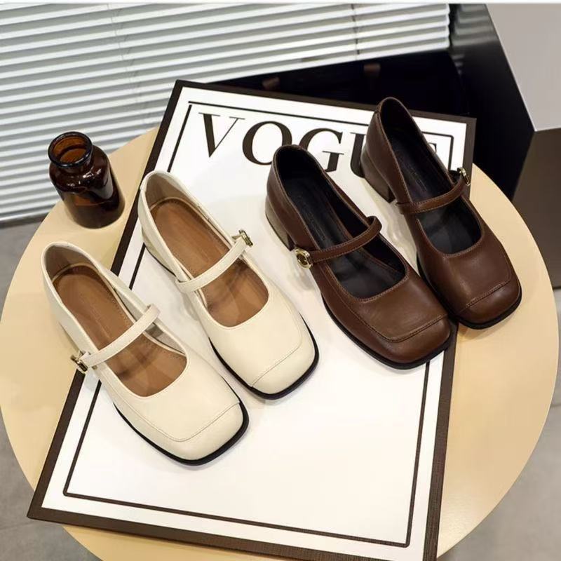 法式一字玛丽珍鞋2025新款秋季复古时尚百搭浅口方头粗跟单鞋厚底