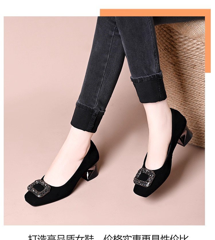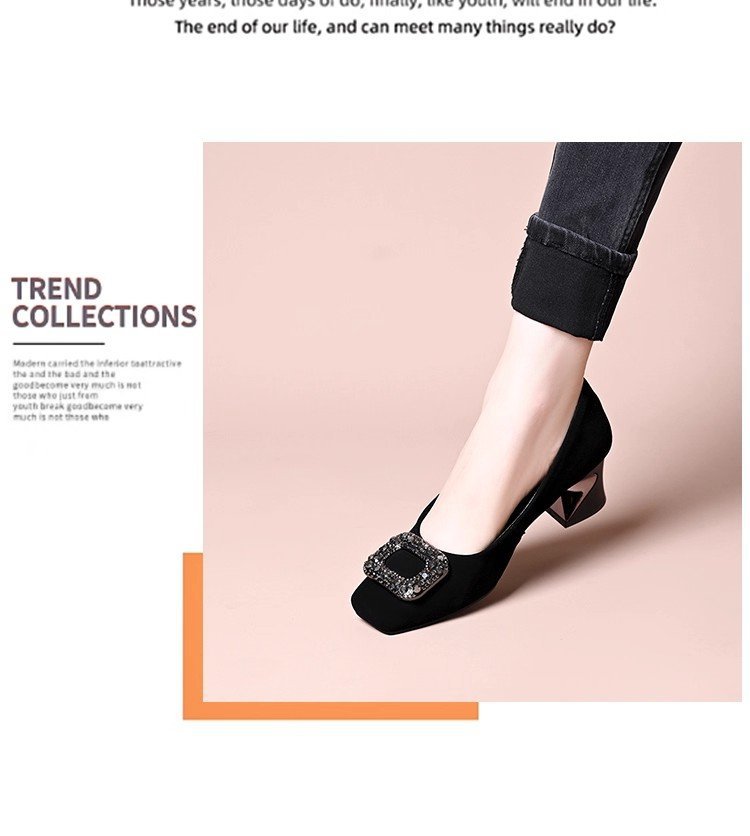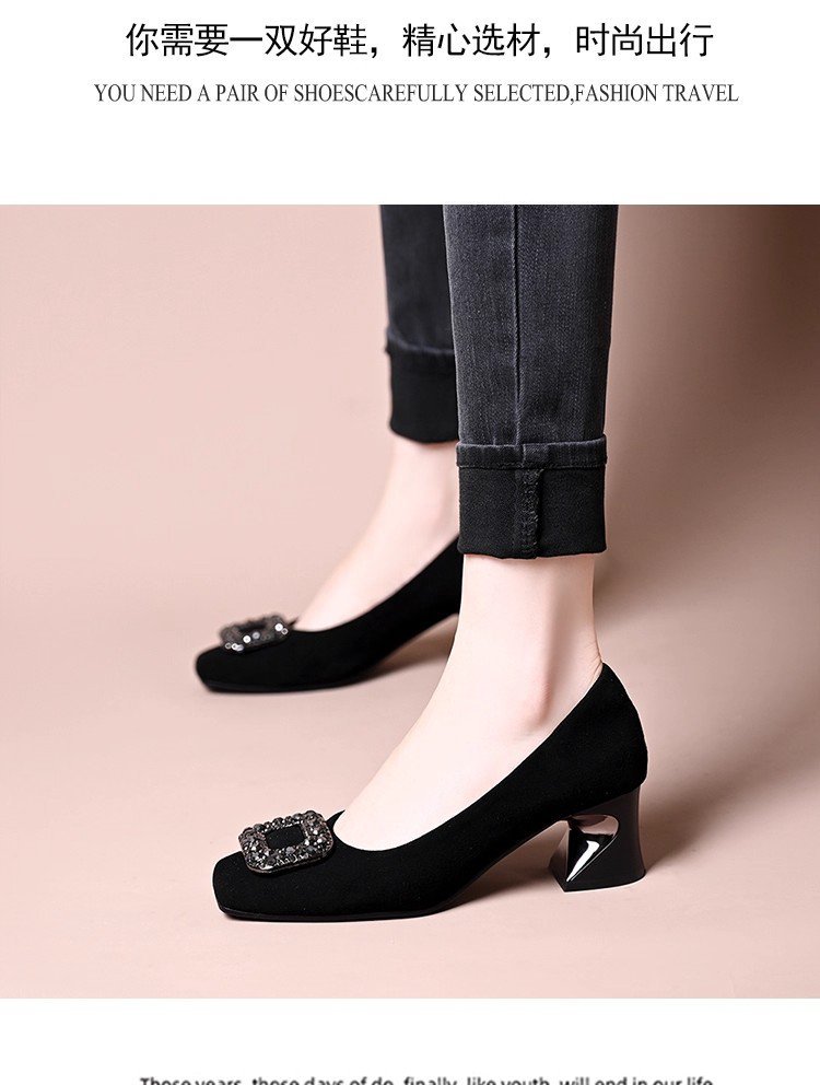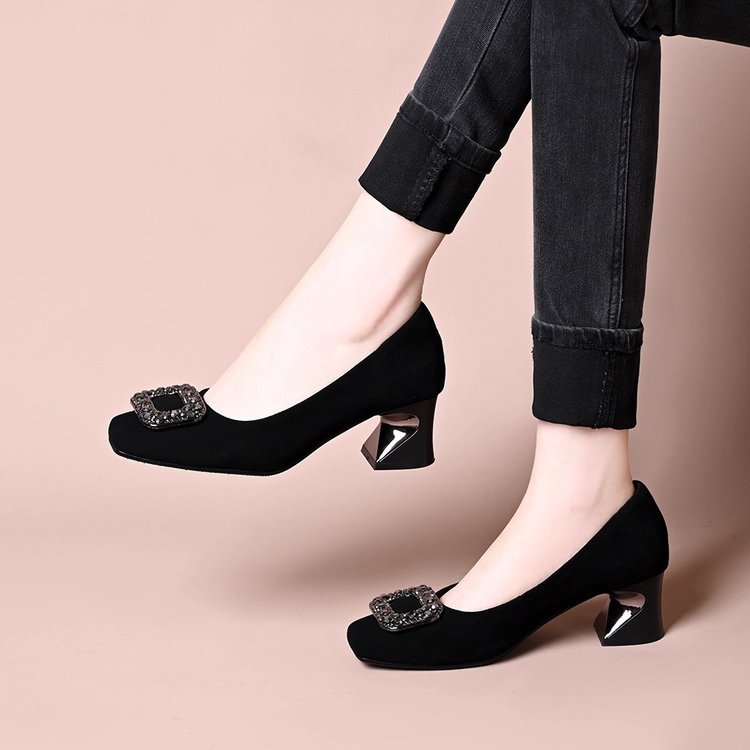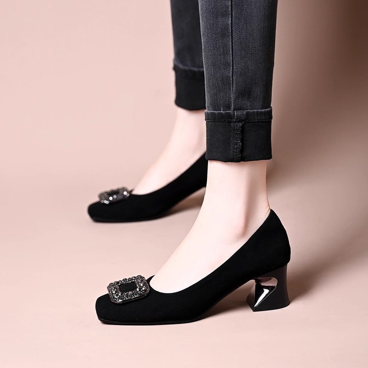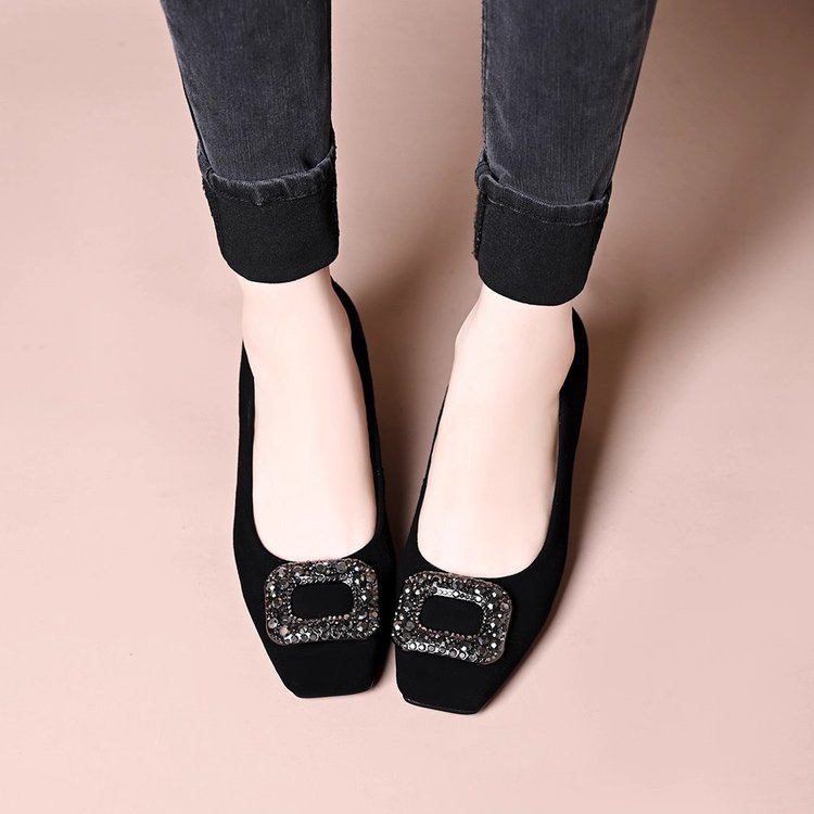 水钻中跟单鞋女2025年新款女士时尚黑色不累脚女鞋秋季浅口通勤鞋