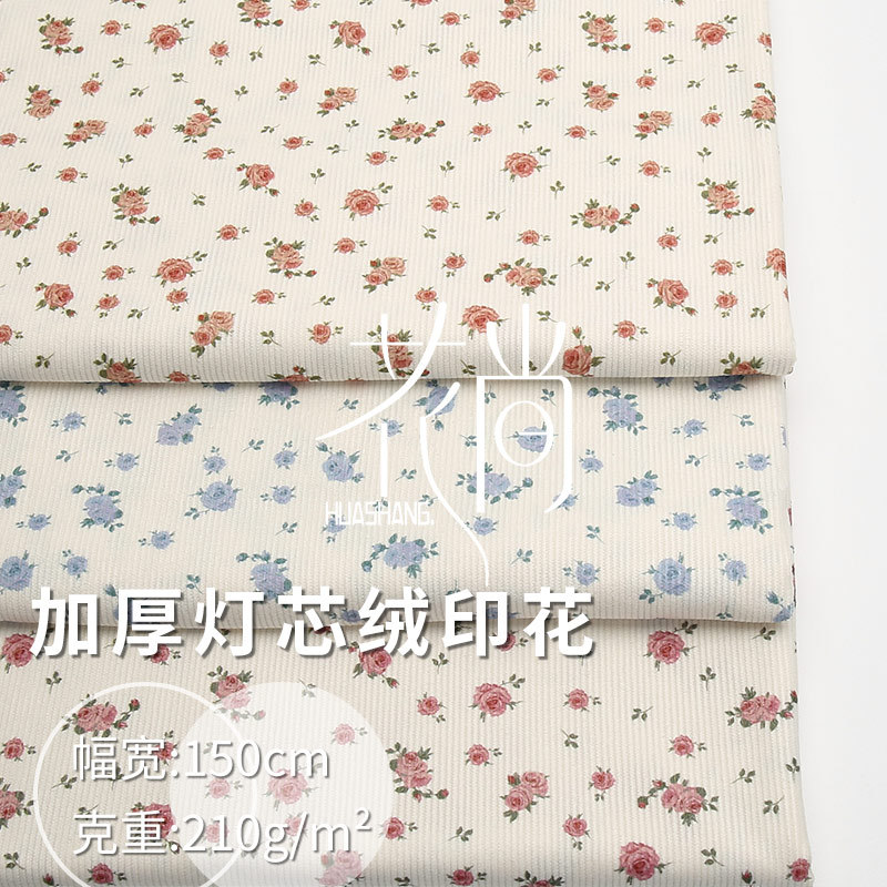灯芯绒碎花布料16坑条服装丝绒条绒布210g秋冬童装连衣裙印花面料