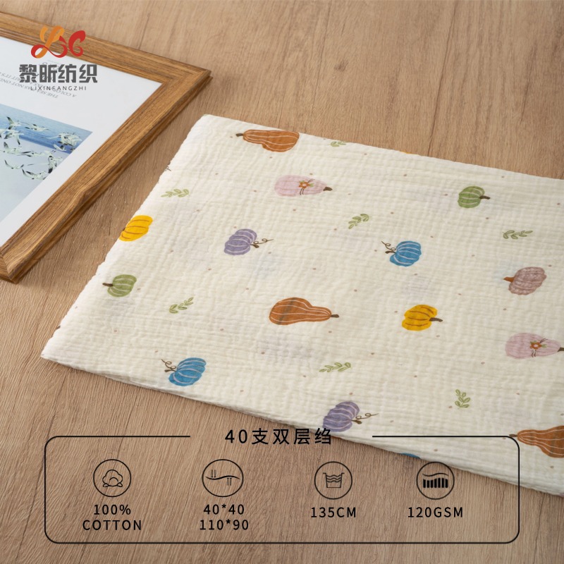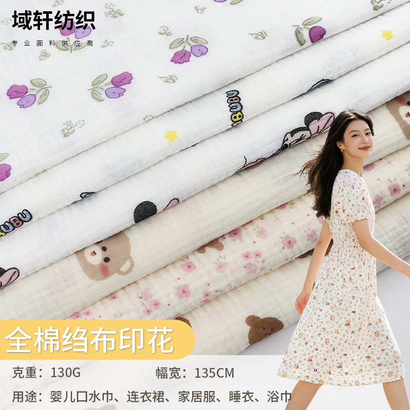 40支全棉双层纱布料 A类母婴睡衣家居服印花绉布 宝宝口水巾面料