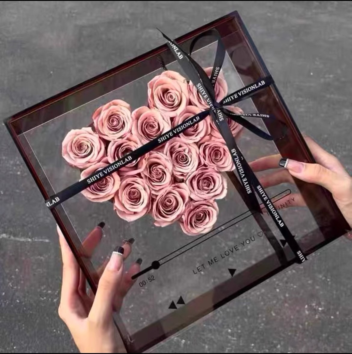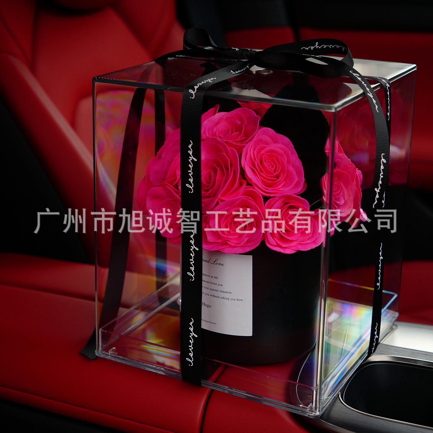 プリザーブドフラワー完成ローズ透明アクリルフラワーボックス女の子への誕生日プレゼント中国のバレンタインデーのギフト