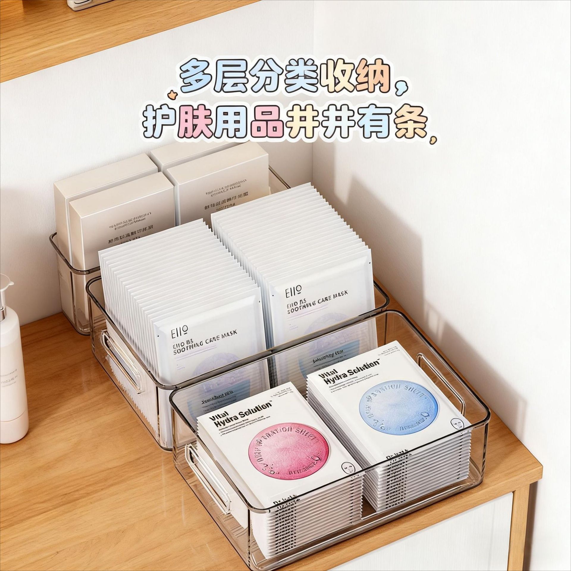 面膜收纳盒透明桌面化妆品刷亚克力整理筐梳妆台镜柜护肤品置物架