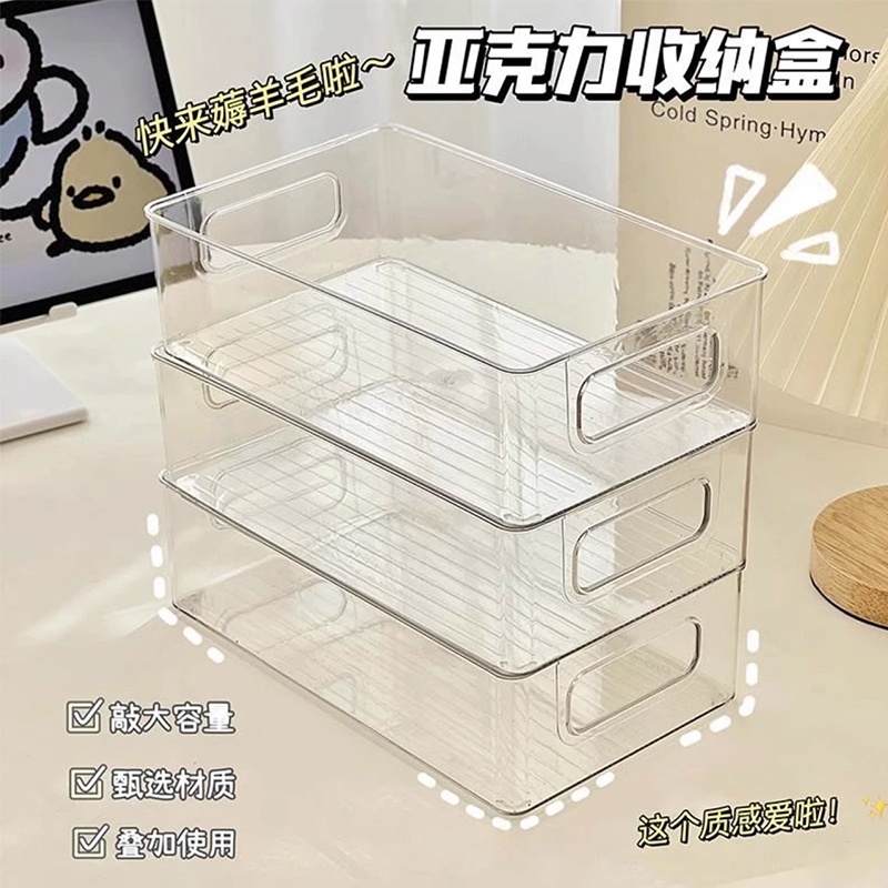 零食收纳箱高颜值客厅桌面杂物整理筐透明亚克力塑料长方形储物盒