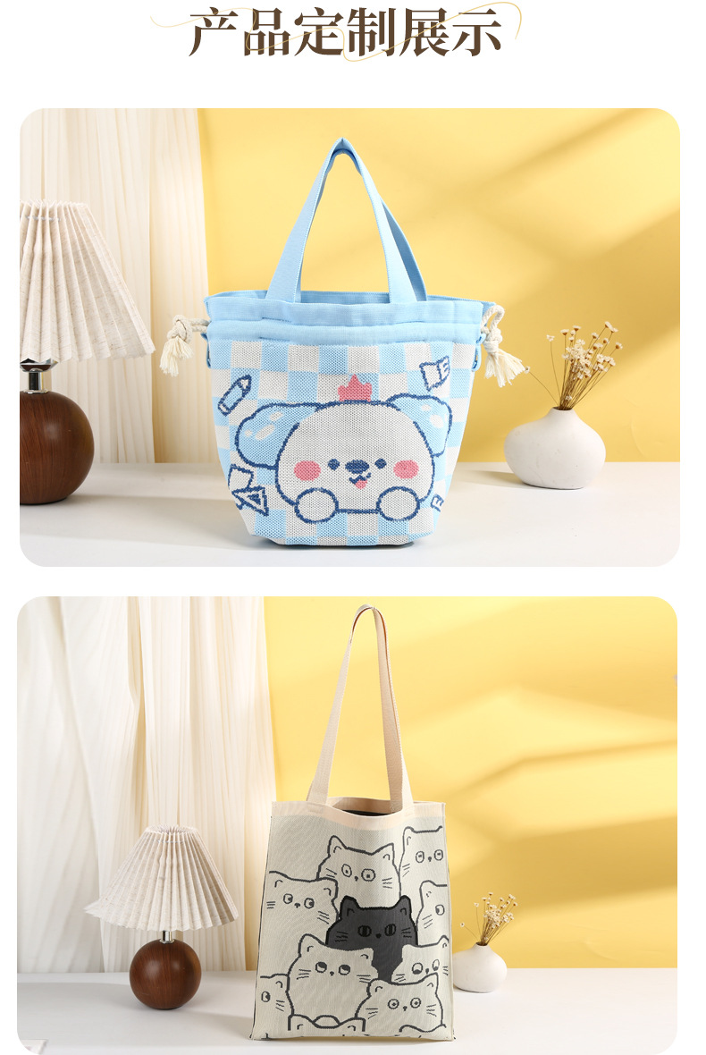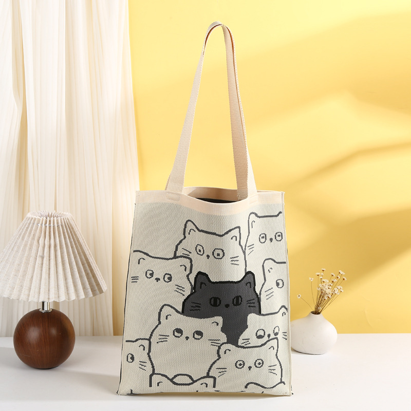 在庫ありかわいい漫画ニャーニットバッグカスタム漫画トートバッグハンドバッグお土産ポータブルニットバッグ