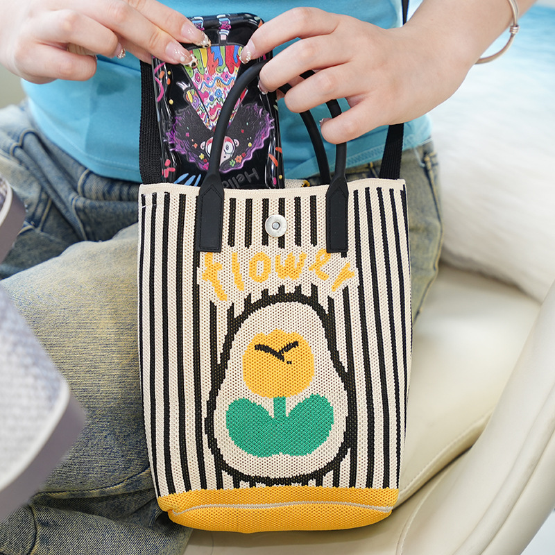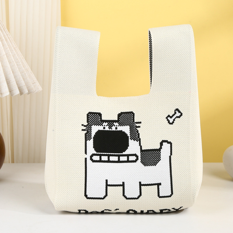 かわいい漫画のポータブルニットバッグニッチデザインニットハンドバッグトートバッグカスタムニットベストショルダーバッグ