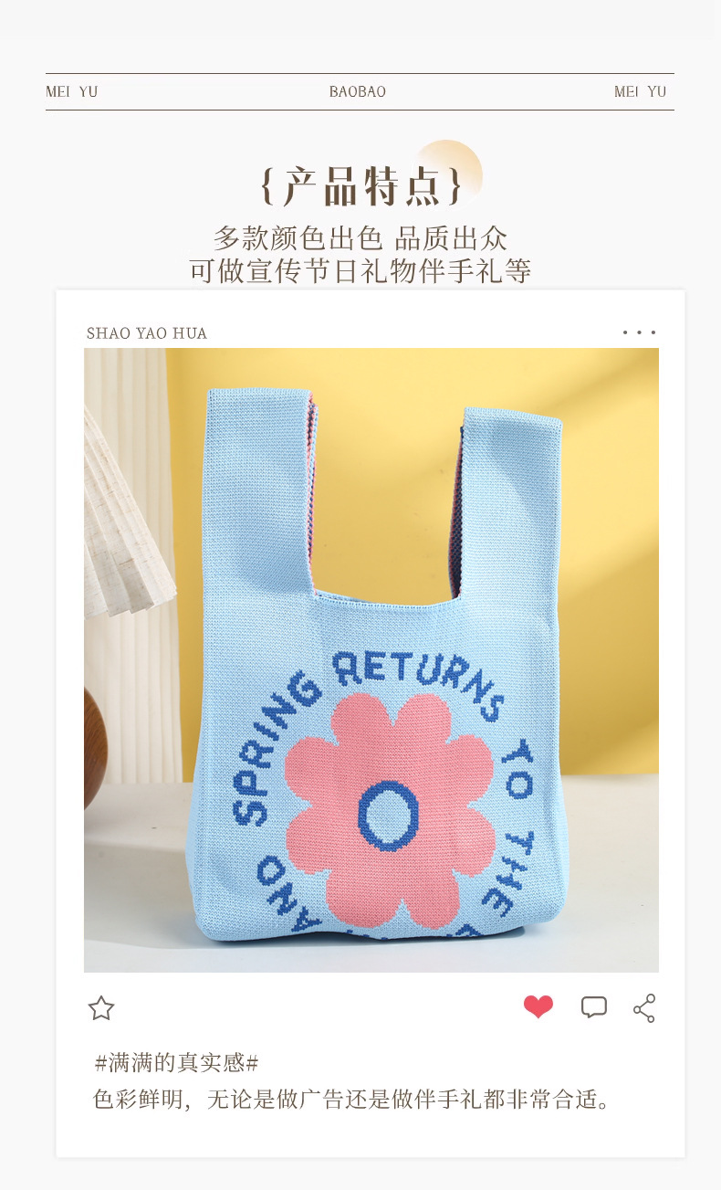 卸売漫画ポータブルニットバッグカスタマイズされたシンプルなお土産ハンドバッグインスタイルガールズベストニットバッグ