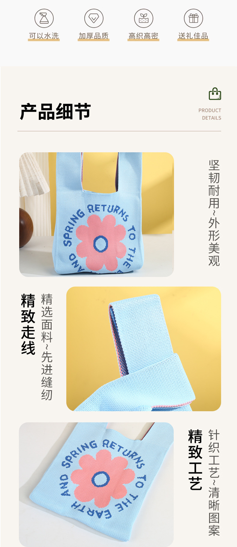 背心针织包定制可爱卡通日常手提针织袋定制小众伴手礼针织袋